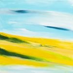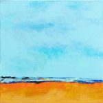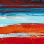 Pour lui un paysage n’est pas seulement un décor, il est aussi vecteur d’émotions. Il se transforme au gré de la lumière. De ces heures passées à saisir l’indéfinissable, il en a gardé un sentiment de plénitude, d’énergie. Ses tableaux tentent de retrouver cette unité de l’instant. Devant la toile les émotions ressurgissent. Une ligne d’horizon où les couleurs et les formes composent peu à peu des paysages qui évoluent à la limite de l’abstraction. C’est cette frontière qui l’intéresse, car elle laisse place à l’imagination. Peu à peu les éléments prennent corps au fur et à mesure que se construit le tableau. « Je n’entends pas reproduire la nature, mais retrouver ma place à ses côtés ».