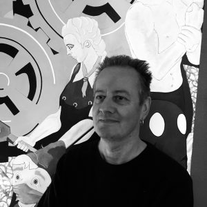 Ma peinture, figurative, s’intéresse avant tout à l’humain et propose une vision du monde qui m’est personnelle. Appelant au dialogue, à l’échange, elle interroge laissant à chacun le soin de questionner ses propres représentations.
