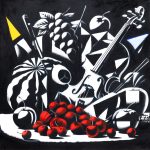 Dans sa peinture, le réel côtoie l’irréel. Son pinceau trempe dans son for intérieur où fourmillent des personnages qui habitent son âme. Loutoby est un artiste optimiste. Ses messages le sont tout autant. D’oeuvre en oeuvre, la palette de couleurs de ses toiles célèbre la vie, la joie, la liberté et l’amour du partage