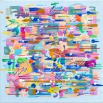 Ses oeuvres naissent d’un processus de recherche continu : superpositions, transparences, accumulations de tracés et jeux de rythme composent des toiles où se mêlent accidents, équilibres et ruptures. Entre abstraction et narration visuelle, il explore la frontière entre le geste maîtrisé et le hasard, cherchant à retrouver la sincérité et la fraicheur du dessin enfantin.