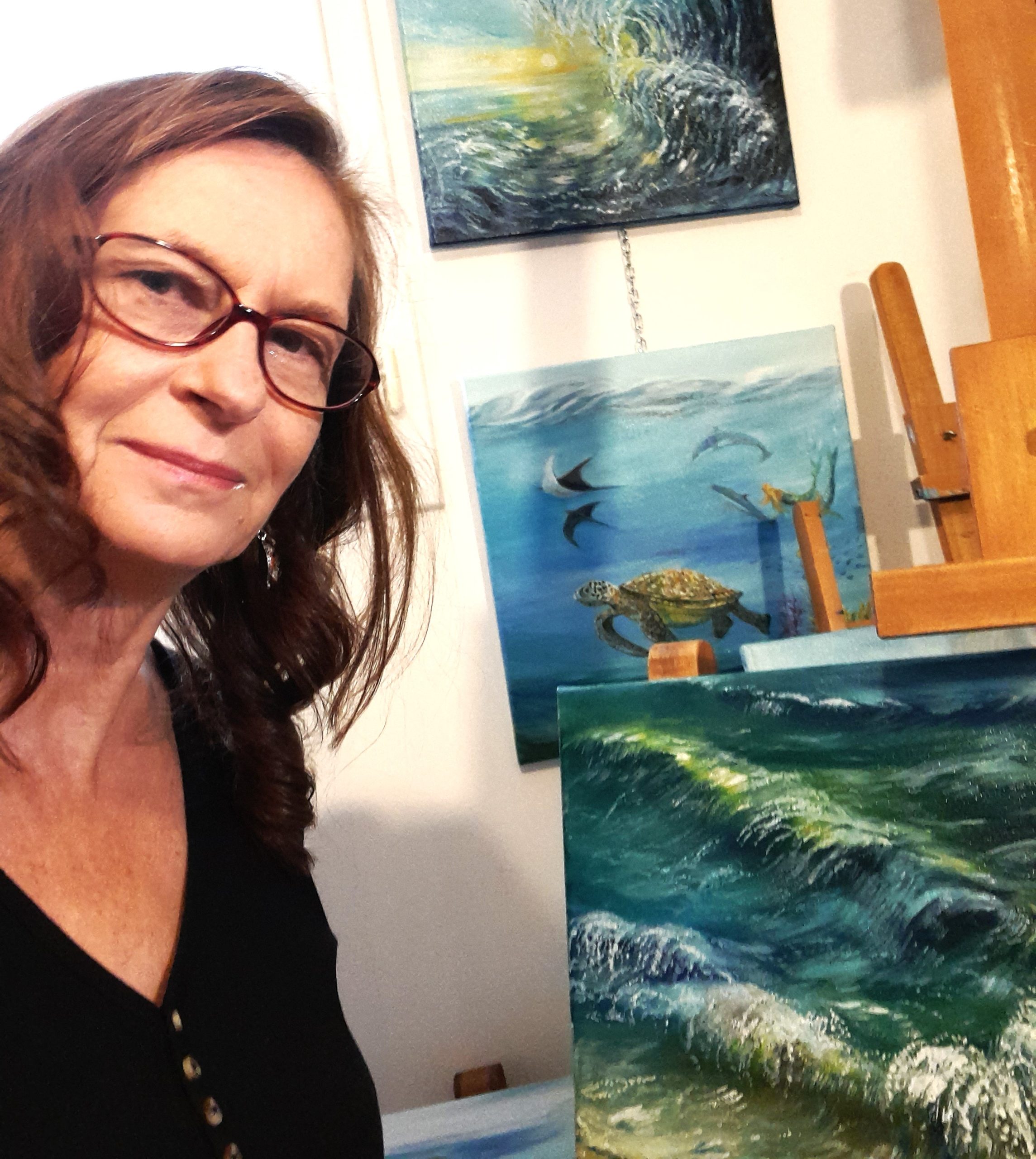 Ma passion pour les animaux marins et les nombreuses couleurs transparentes et iridescentes me permettent de créer les profondeurs marines, les plages et les vagues douces ou tumultueuses.