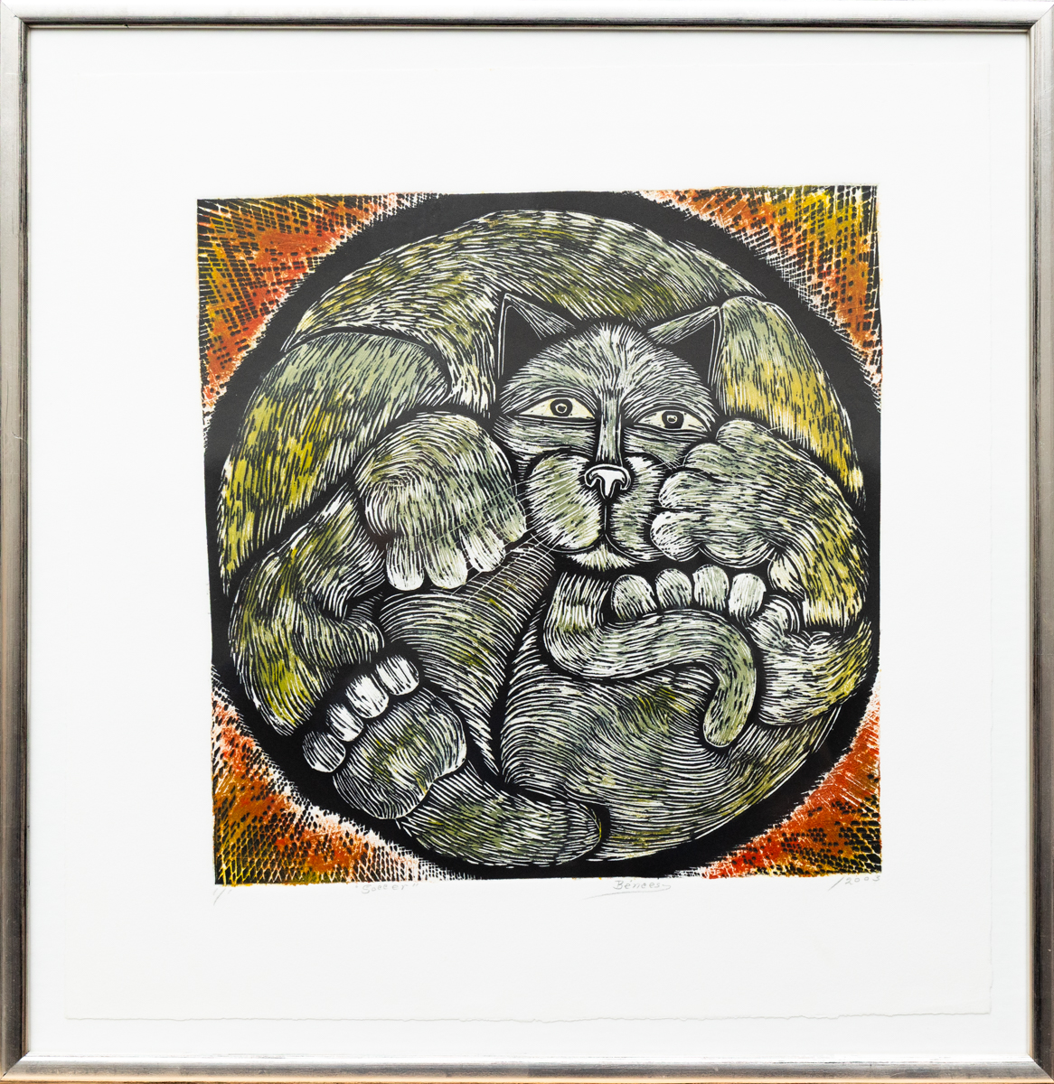 « Soccer – série: Chat » – Linogravure sur papier