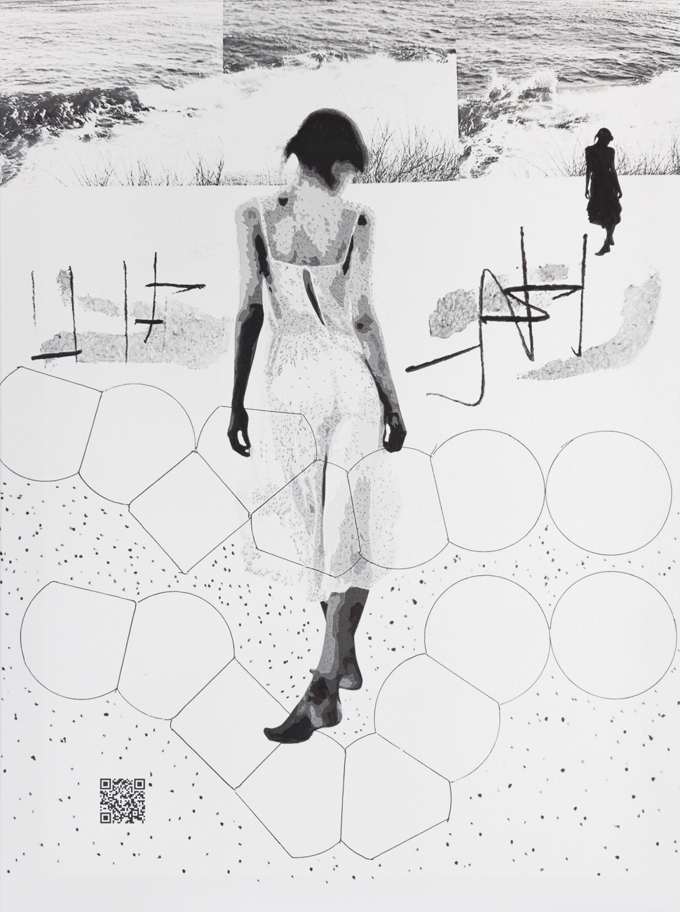 « Femme face à l’océan , Série DESSE(i)NS – 88 FEMM(ES) & ABSTRAITE, Collection Méta graphic » – Acrylique, encres et numérique sur toile N°17/88