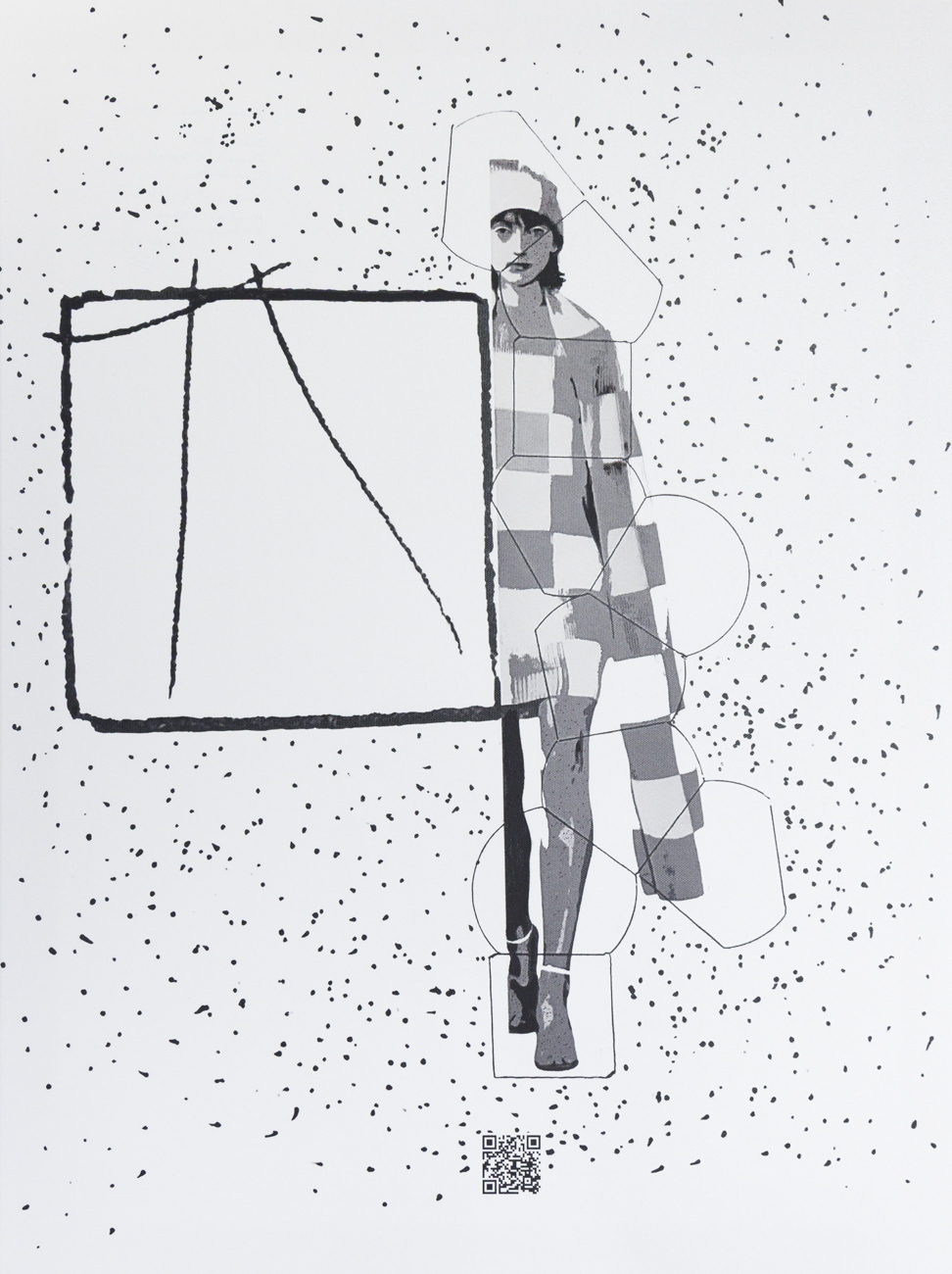 « Femme géométrique , Série DESSE(i)NS – 88 FEMM(ES) & ABSTRAITE, Collection Méta graphic » – Acrylique, encres et numérique sur toile N°34/88