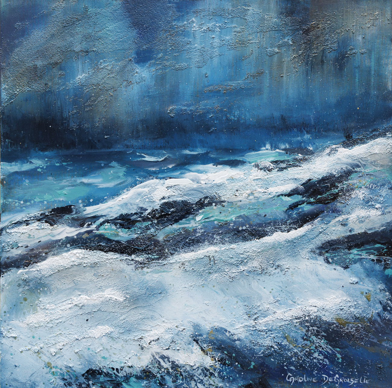 « Les vagues joueuses de pluie » – Acrylique sur toile