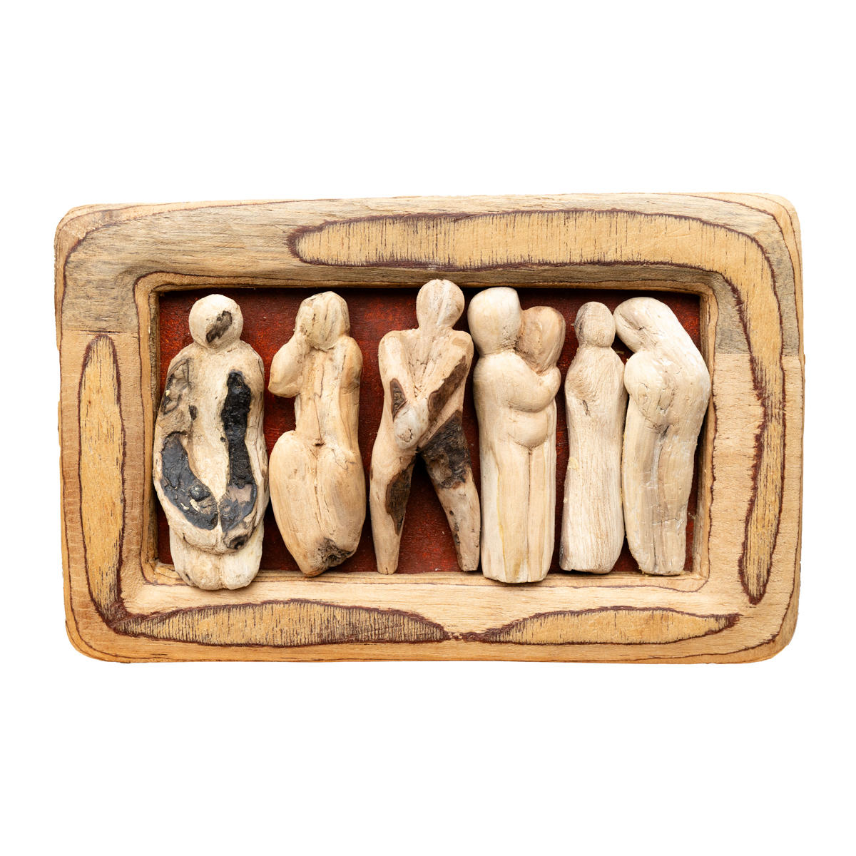 « Portraits sur cadre contreplaqué » – Sculpture bois murale