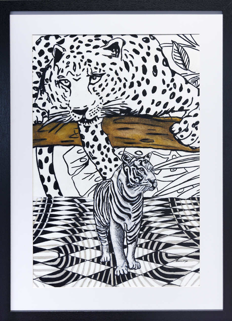 « Tiger et Panthère – série Animals » – Acrylique et techniques mixtes sur papier peint