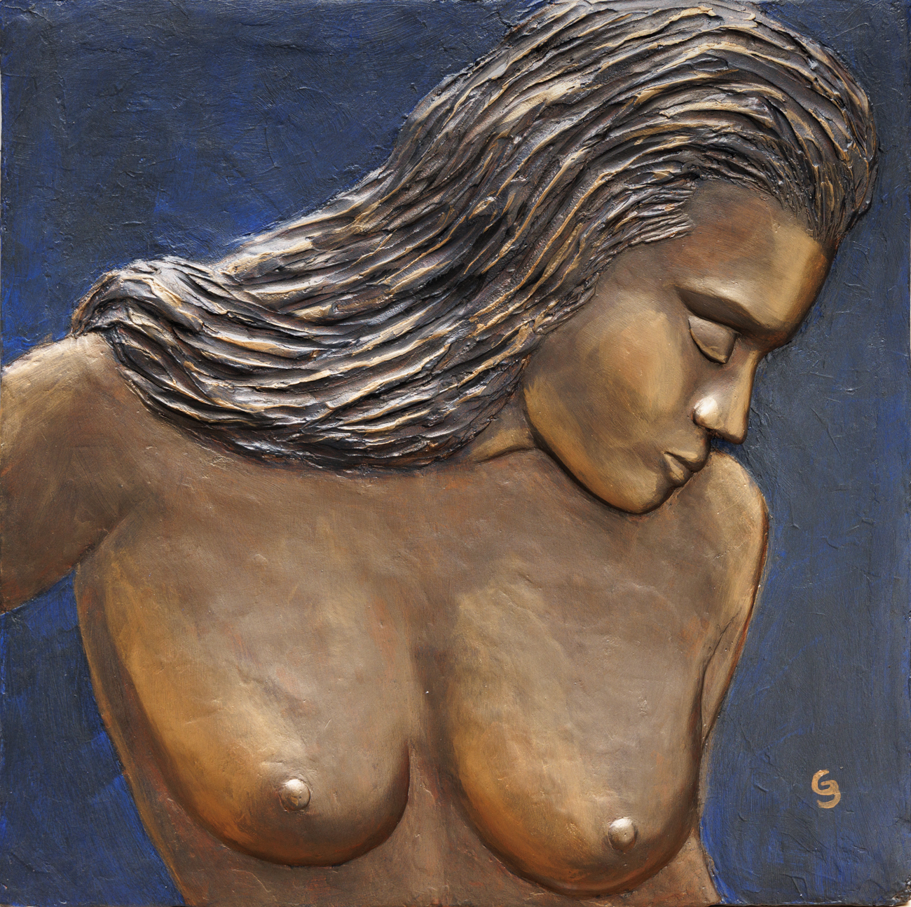 « Femme buste or » – Bas relief, acrylique et plâtre sur toile