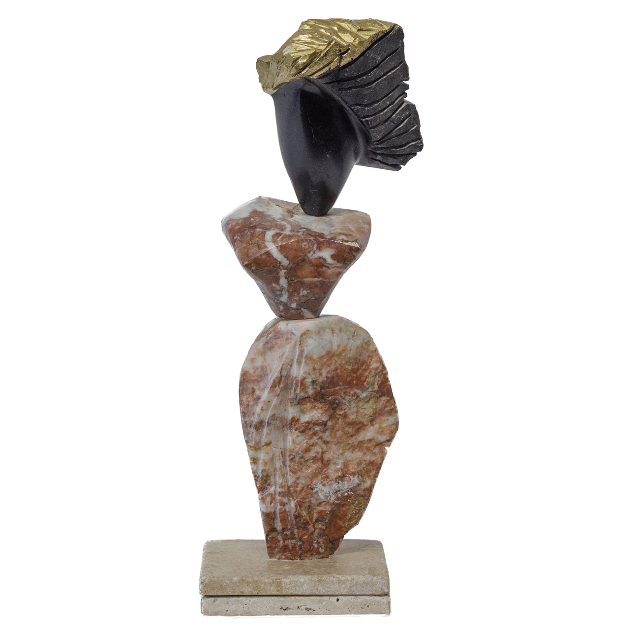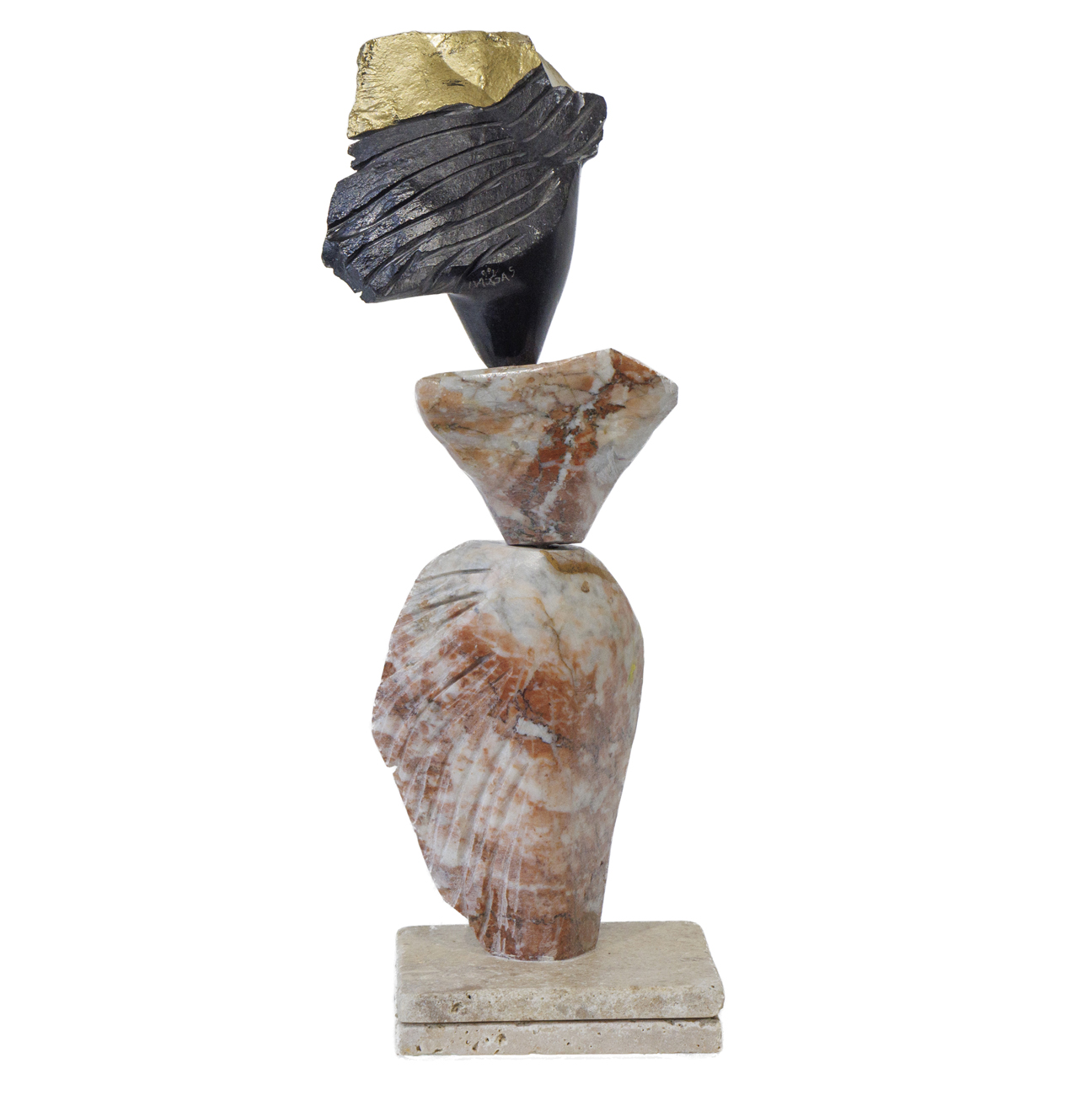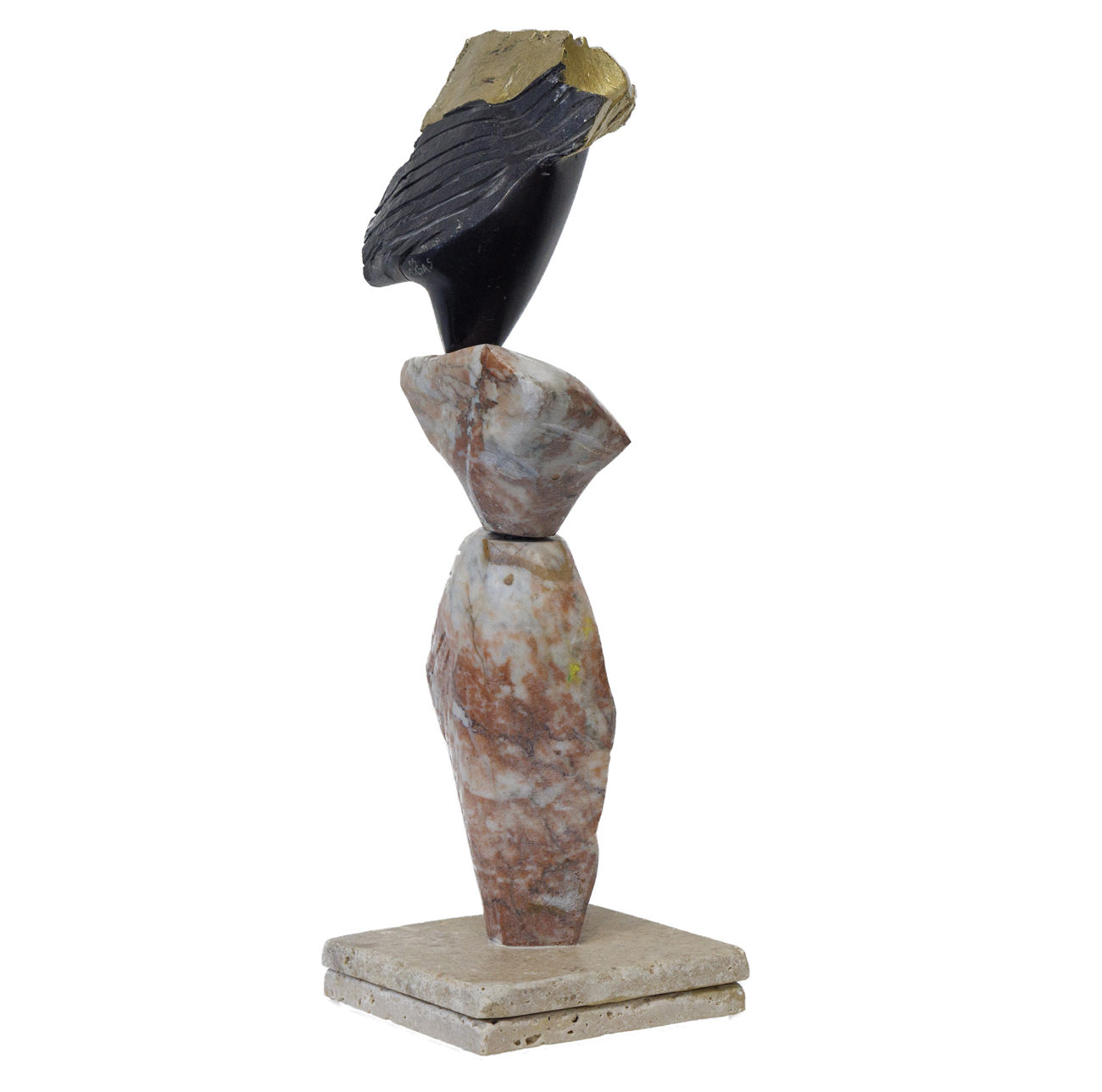 « Fleur de Lotus » – Sculpture marbre rouge du Languedoc et noire