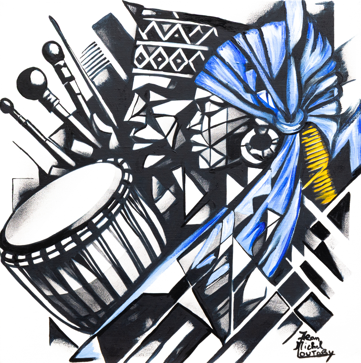 « La danse des tambours Yoruba » – Acrylique technique mixte sur toile