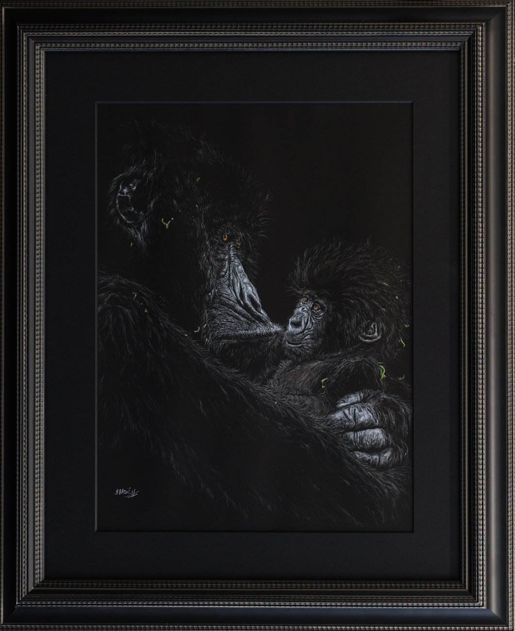 « Gorille des montagnes » – crayon de couleur sur papier canson noir