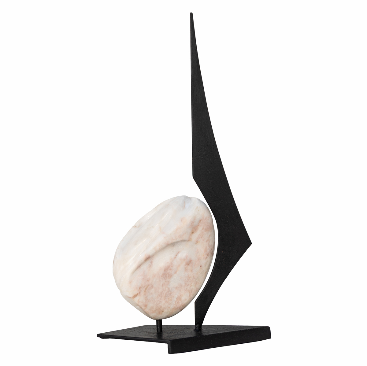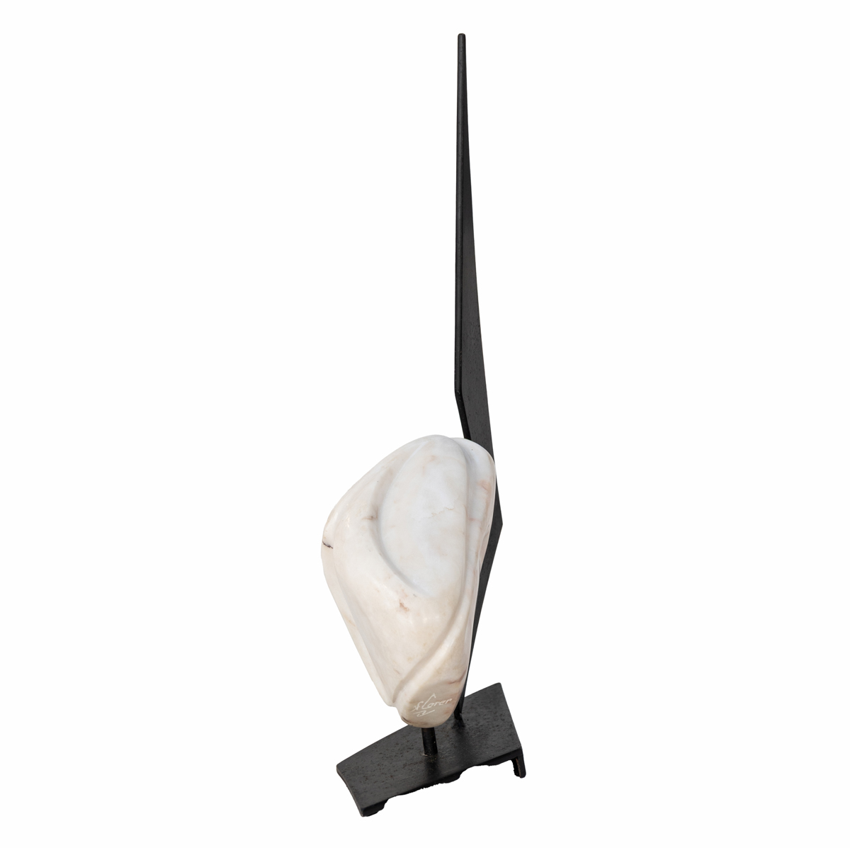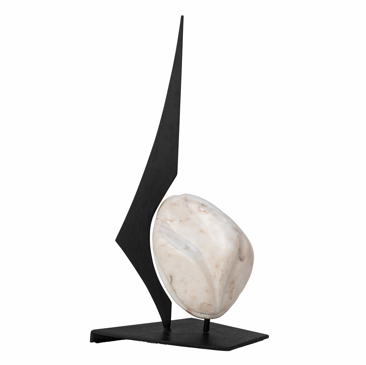 « Incrustation 2 » – Sculpture en marbre de Carrare et acier