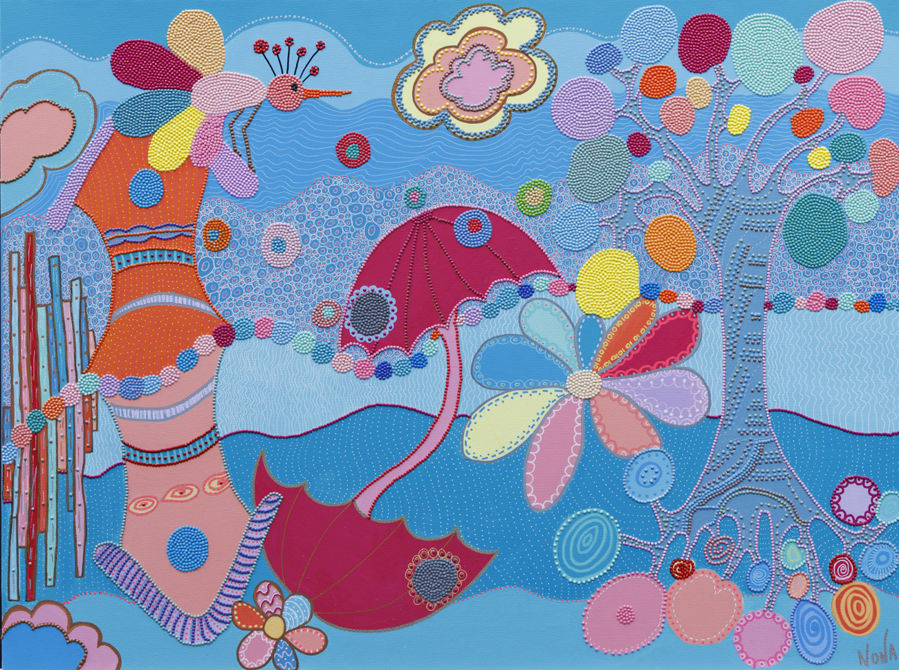 « Reflets, série Sentiers d’un rêve éveillé » – Acrylique et perles diamants sur toile