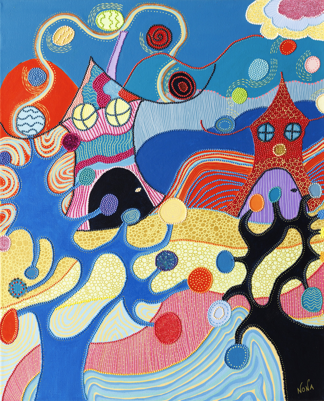 « Jongleries Espiègles, série Sentiers d’un rêve éveillé » – Acrylique et perles diamants sur toile